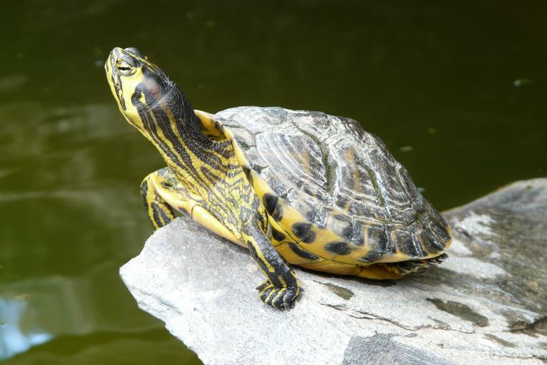 Keywords: water turtle long jibe panzer turtle tortoise shell armored slowly on the water water animal zoo