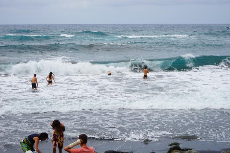 Keywords: water wave swim through coral immersion swell sea surfer fun bathing beach lava sand tenerife lava sand ocean north coast playa de almáciga almaciga beach of almáciga