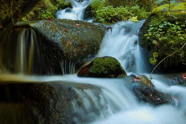 Keywords: waterfall cascade flowing water autumn moss stones nature green river huntava rešov czech republic
