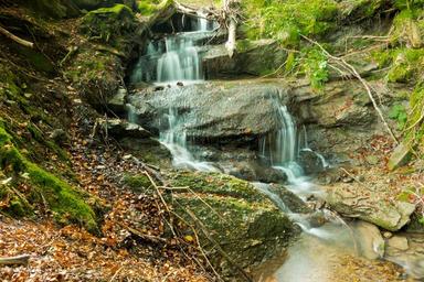 Keywords: waterfall long exposure green water leafs sticks
