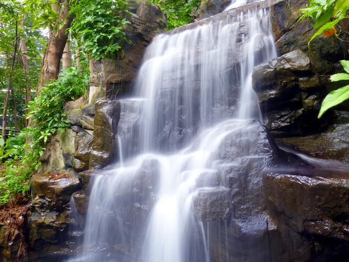 Keywords: waterfall rock flowing landscape leaves water plants trees natural park