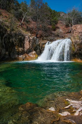 | Keywords: arizona coconino national forest coconinonationalforest forest service forestservice fossil creek fossilcreek red rock ranger district redrockrangerdistrict tonto national forest tontonationalforest usfs canyon creek forest outdoors riparian water camp verde campverde united states unitedstates outdoor landscape waterfall This large, natural waterfall on Fossil Creek is the destination of hikers on Waterfall Trail. A large, deep pool at the base of the fall is a popular swimming hole. Fossil Creek seems to appear out of nowhere, gushing 20,000 gallons a minute out of a series of springs at the bottom of a 1,600 foot deep canyon. Over the years these calcium laden waters have laid down huge deposits of a type of limestone called travertine. That rock-like substance encases whatever happens to fall into the streambed, forming the fossils for which the area is named. Fossil Creek is one of two "Wild and Scenic" rivers in Arizona. This special designation was achieved when the Irving power plant was decommissioned, and removal of flume and dam on the creek allowed this magnificent creek to once again flow freely through Arizona's arid landscape. Most people come to Fossil Creek to sunbathe, wade, hike and birdwatch. It's also a great place to take photographs. The lushness of the riparian area strikes a sharp contrast to the brittle desert that surrounds it. Increasing popularity has led to the Coconino and Tonto National Forests to implement a parking permit reservation system in 2016. Reserved parking permits give visitors the peace of mind knowing they'll have a spot waiting for them in this remote location. Many visitors drive two or three hours to get to the creek. The final descent to the creek at the bottom of a canyon is on an extremely rough, rocky jeep road. Photo by Deborah Lee Soltesz, March 2, 2016. Credit: USFS Coconino National Forest. Learn more about visiting Fossil Creek, Fossil Springs Wilderness, and the Coconino National Forest. This large, natural waterfall on Fossil Creek is the destination of hikers on Waterfall Trail. A large, deep pool at the base of the fall is a popular swimming hole. Fossil Creek seems to appear out of nowhere, gushing 20,000 gallons a minute out of a series of springs at the bottom of a 1,600 foot deep canyon. Over the years these calcium laden waters have laid down huge deposits of a type of limestone called travertine. That rock-like substance encases whatever happens to fall into the streambed, forming the fossils for which the area is named. Fossil Creek is one of two "Wild and Scenic" rivers in Arizona. This special designation was achieved when the Irving power plant was decommissioned, and removal of flume and dam on the creek allowed this magnificent creek to once again flow freely through Arizona's arid landscape. Most people come to Fossil Creek to sunbathe, wade, hike and birdwatch. It's also a great place to take photographs. The lushness of the riparian area strikes a sharp contrast to the brittle desert that surrounds it. Increasing popularity has led to the Coconino and Tonto National Forests to implement a parking permit reservation system in 2016. Reserved parking permits give visitors the peace of mind knowing they'll have a spot waiting for them in this remote location. Many visitors drive two or three hours to get to the creek. The final descent to the creek at the bottom of a canyon is on an extremely rough, rocky jeep road. Photo by Deborah Lee Soltesz, March 2, 2016. Credit: USFS Coconino National Forest. Learn more about visiting Fossil Creek, Fossil Springs Wilderness, and the Coconino National Forest. |
