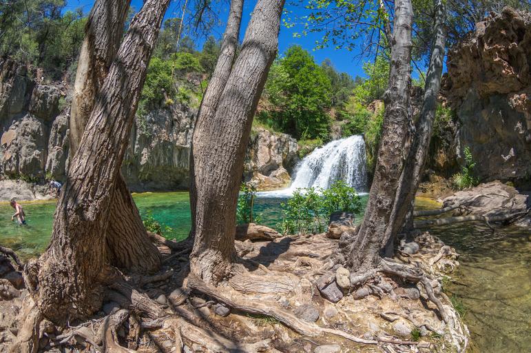| Keywords: arizona coconino national forest coconinonationalforest forest service forestservice fossil creek fossilcreek k20d national forest nationalforest pentax k20d pentaxk20d red rock ranger district redrockrangerdistrict tonto national forest tontonationalforest usfs waterfall trail waterfalltrail canyon desert forest hiking outdoors spring springtime trail camp verde campverde united states unitedstates outdoor tree plant A large, natural waterfall on Fossil Creek is the destination of an easy, one mile hike on Waterfall Trail. A large, deep pool at the base of the fall is a popular swimming hole. Fossil Creek produces 20,000 gallons of water a minute from a series of springs at the bottom of a 1,600 foot deep canyon. This permanent water source has created a stunningly beautiful, green riparian zone rich with flora and fauna at the bottom of this arid canyon in Arizona's high desert. Travertine deposits encase whatever happens to fall into the streambed, forming the fossils for which the area is named. These deposits create deep pools along the length of the creek, providing opportunities to find more secluded swimming holes than the popular pool at the waterfall. Fossil Creek is one of two "Wild and Scenic" rivers in Arizona. This designation was achieved when the Irving power plant was decommissioned, and removal of flume and dam on the creek allowed the creek to flow free. Increasing popularity has led to the Coconino and Tonto National Forests to implement a parking permit reservation system in 2016. Reserved parking permits allow visitors to have a parking spot available in their chosen parking lot. Many visitors drive two or three hours to get to the creek. The final descent to the creek at the bottom of a canyon is on an extremely rough, rocky jeep road. In prior years, the area would often be closed to entry when it reached capacity, and potential visitors would be turned away after the long, difficult drive. Photo by Deborah Lee Soltesz, May 4, 2016. For trail and recreation information, see Fossil Creek, Fossil Springs Wilderness, and the Coconino National Forest. A large, natural waterfall on Fossil Creek is the destination of an easy, one mile hike on Waterfall Trail. A large, deep pool at the base of the fall is a popular swimming hole. Fossil Creek produces 20,000 gallons of water a minute from a series of springs at the bottom of a 1,600 foot deep canyon. This permanent water source has created a stunningly beautiful, green riparian zone rich with flora and fauna at the bottom of this arid canyon in Arizona's high desert. Travertine deposits encase whatever happens to fall into the streambed, forming the fossils for which the area is named. These deposits create deep pools along the length of the creek, providing opportunities to find more secluded swimming holes than the popular pool at the waterfall. Fossil Creek is one of two "Wild and Scenic" rivers in Arizona. This designation was achieved when the Irving power plant was decommissioned, and removal of flume and dam on the creek allowed the creek to flow free. Increasing popularity has led to the Coconino and Tonto National Forests to implement a parking permit reservation system in 2016. Reserved parking permits allow visitors to have a parking spot available in their chosen parking lot. Many visitors drive two or three hours to get to the creek. The final descent to the creek at the bottom of a canyon is on an extremely rough, rocky jeep road. In prior years, the area would often be closed to entry when it reached capacity, and potential visitors would be turned away after the long, difficult drive. Photo by Deborah Lee Soltesz, May 4, 2016. For trail and recreation information, see Fossil Creek, Fossil Springs Wilderness, and the Coconino National Forest. |