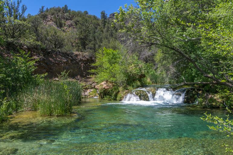 | Keywords: arizona coconino national forest coconinonationalforest forest service forestservice fossil creek fossilcreek k20d national forest nationalforest pentax k20d pentaxk20d red rock ranger district redrockrangerdistrict tonto national forest tontonationalforest usfs waterfall trail waterfalltrail canyon desert forest hiking outdoors spring springtime trail camp verde campverde united states unitedstates outdoor landscape water creek waterfall A large, natural waterfall on Fossil Creek is the destination of an easy, one mile hike on Waterfall Trail. A large, deep pool at the base of the fall is a popular swimming hole. Fossil Creek produces 20,000 gallons of water a minute from a series of springs at the bottom of a 1,600 foot deep canyon. This permanent water source has created a stunningly beautiful, green riparian zone rich with flora and fauna at the bottom of this arid canyon in Arizona's high desert. Travertine deposits encase whatever happens to fall into the streambed, forming the fossils for which the area is named. These deposits create deep pools along the length of the creek, providing opportunities to find more secluded swimming holes than the popular pool at the waterfall. Fossil Creek is one of two "Wild and Scenic" rivers in Arizona. This designation was achieved when the Irving power plant was decommissioned, and removal of flume and dam on the creek allowed the creek to flow free. Increasing popularity has led to the Coconino and Tonto National Forests to implement a parking permit reservation system in 2016. Reserved parking permits allow visitors to have a parking spot available in their chosen parking lot. Many visitors drive two or three hours to get to the creek. The final descent to the creek at the bottom of a canyon is on an extremely rough, rocky jeep road. In prior years, the area would often be closed to entry when it reached capacity, and potential visitors would be turned away after the long, difficult drive. Photo by Deborah Lee Soltesz, May 4, 2016. For trail and recreation information, see Fossil Creek, Fossil Springs Wilderness, and the Coconino National Forest. A large, natural waterfall on Fossil Creek is the destination of an easy, one mile hike on Waterfall Trail. A large, deep pool at the base of the fall is a popular swimming hole. Fossil Creek produces 20,000 gallons of water a minute from a series of springs at the bottom of a 1,600 foot deep canyon. This permanent water source has created a stunningly beautiful, green riparian zone rich with flora and fauna at the bottom of this arid canyon in Arizona's high desert. Travertine deposits encase whatever happens to fall into the streambed, forming the fossils for which the area is named. These deposits create deep pools along the length of the creek, providing opportunities to find more secluded swimming holes than the popular pool at the waterfall. Fossil Creek is one of two "Wild and Scenic" rivers in Arizona. This designation was achieved when the Irving power plant was decommissioned, and removal of flume and dam on the creek allowed the creek to flow free. Increasing popularity has led to the Coconino and Tonto National Forests to implement a parking permit reservation system in 2016. Reserved parking permits allow visitors to have a parking spot available in their chosen parking lot. Many visitors drive two or three hours to get to the creek. The final descent to the creek at the bottom of a canyon is on an extremely rough, rocky jeep road. In prior years, the area would often be closed to entry when it reached capacity, and potential visitors would be turned away after the long, difficult drive. Photo by Deborah Lee Soltesz, May 4, 2016. For trail and recreation information, see Fossil Creek, Fossil Springs Wilderness, and the Coconino National Forest. |