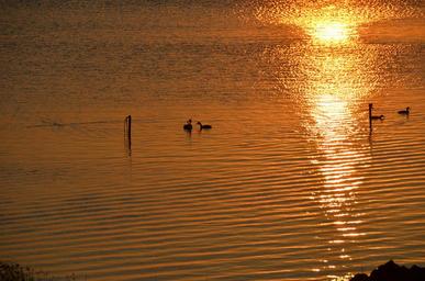 Keywords: waterfowl ducks sea lake sunset evening twilight peaceful wide reflect romance abendstimmung