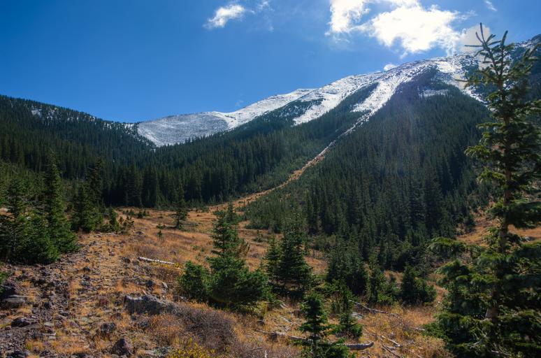 | Keywords: abineau-bear jaw loop abineaubearjawloop arizona coconino national forest coconinonationalforest fr 146 fr146 flagstaff ranger district flagstaffrangerdistrict forest road 146 forestroad146 forest service forestservice hdr humphreys peak humphreyspeak kachina peaks wilderness kachinapeakswilderness san francisco mountain sanfranciscomountain san francisco peaks sanfranciscopeaks usfs waterline road waterlineroad waterline trail waterlinetrail waterline trail #146 waterlinetrail146 waterline trail no. 146 waterlinetrailno146 aebhdr flagstaff forest hiking mountain outdoors peaks trail wilderness outdoor mountainside landscape hill foothill ridge tree plant Abineau Trail is a steep 1,800 foot climb over two miles up the slopes of the San Francisco Peaks through Abineau Canyon. The trail meets the Waterline Trail at the top, which can be followed down to Bear Jaw Trail to return to the trailhead. Each leg of the loop is around two miles long, plus a 0.4 mile connector trail from the trailhead to the loop, making a total loop hike of seven miles. The loop is one of the quintessential autumn hikes in the San Francisco Peaks. Aspens along all three legs of the loop turn gold, and falling leaves carpet the forest floor and decorate the conifers. A storm system passed through the area October 4-7, 2015, raining at lower elevations and snowing on the upper reaches of the San Francisco Peaks. The snow-capped Peaks were a wonderful treat after the few days grey, cloudy, wet weather that had put a damper on outdoor activity. Photo by Deborah Lee Soltesz, October 8, 2015. Credit: U.S. Forest Service, Coconino National Forest. For more information about this trail, see the Abineau-Bear Jaw Loop trail description on the Coconino National Forest website. Abineau Trail is a steep 1,800 foot climb over two miles up the slopes of the San Francisco Peaks through Abineau Canyon. The trail meets the Waterline Trail at the top, which can be followed down to Bear Jaw Trail to return to the trailhead. Each leg of the loop is around two miles long, plus a 0.4 mile connector trail from the trailhead to the loop, making a total loop hike of seven miles. The loop is one of the quintessential autumn hikes in the San Francisco Peaks. Aspens along all three legs of the loop turn gold, and falling leaves carpet the forest floor and decorate the conifers. A storm system passed through the area October 4-7, 2015, raining at lower elevations and snowing on the upper reaches of the San Francisco Peaks. The snow-capped Peaks were a wonderful treat after the few days grey, cloudy, wet weather that had put a damper on outdoor activity. Photo by Deborah Lee Soltesz, October 8, 2015. Credit: U.S. Forest Service, Coconino National Forest. For more information about this trail, see the Abineau-Bear Jaw Loop trail description on the Coconino National Forest website. |