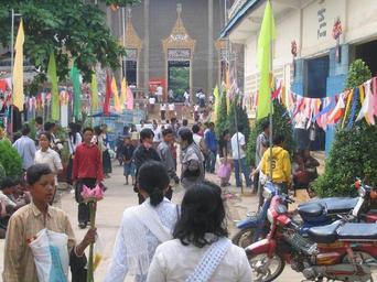 | Keywords: WatMohaMontreyAtPchumBen.JPG en PHNOM PENH Entry to WAT MOHA MONTREY at PCHUM BEN day fr PHNOM PENH Entrée de la pagode WAT MOHA MONTRAY le jour de PCHUM BEN own Sundgauvien38 2005-09 11 33 16 5 N 104 54 48 6 E Buddhism in Cambodia Wat Moha Montrey Phnom Penh |