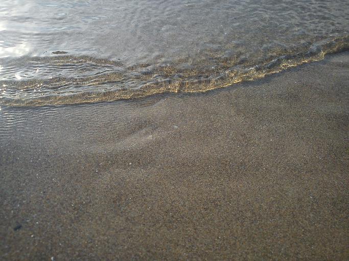 Keywords: wave clear water beach sand grains grains of sand sand beach sea small light reflection gloss shine smooth transparent shock wave close up