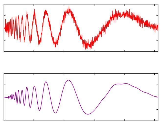 Keywords: Wavelet denoising.svg cs Odstranění šumu ze signálu prahováním koeficientů vlnkové transformace Vytvořeno pomocí MATLABu en Signal denoising by wavelet transform thresholding Created using MATLAB own DaBler 2010-01-26 Wavelets Noise