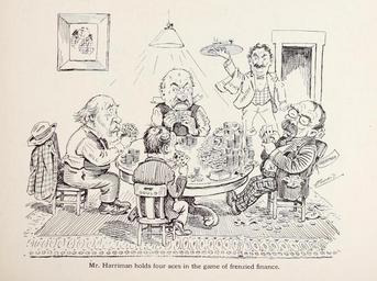 | Keywords: WCMorris Spokesman-Review cartoons 080.jpg en Editorial cartoon by William C Morris circa 1906 “ 1908 cite book Spokesman-Review Cartoons William Charles Morris 1908 Spokane WA Review Publishing Company https //archive org/details/spokesmanreviewc00morr Creator William Charles Morris other versions PD-old-70-1923 Spokesman-Review Cartoons 1908 James J Hill Edward Henry Harriman Caricatures of J P Morgan Thomas William Lawson Poker People playing card games in art | ||||