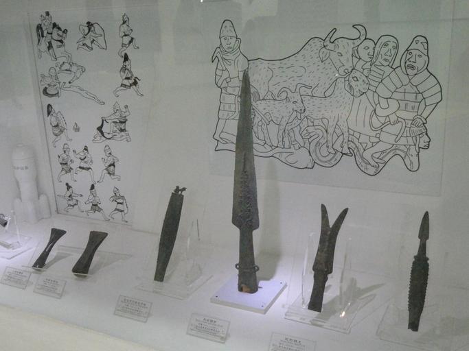 Keywords: Weapons - Yunnan Provincial Museum - DSC02271.JPG Exhibit in the Yunnan Provincial Museum Kunming Yunnan China I took this photograph 2011-08-09 01 09 51 Daderot Public domain Antiquities in the Yunnan Provincial Museum