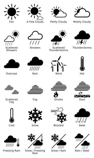 | Keywords: Weather Icons.png en Weather Icons by Matthew Petroff 2013-03-29 20 12 38 http //www mpetroff net/archives/2012/09/14/kindle-weather-display/ Matthew Petroff cc-zero LicenseReview http //www mpetroff net/archives/2012/09/14/kindle-weather-display/ mpetroff net Bobamnertiopsis 2013-09-26 Uploaded with UploadWizard Weather icons |