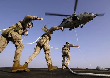 | Keywords: Web 060923-N-9742R-191.jpg Explosive Ordnance Disposalmen attached to Explosive Ordnance Disposal Mobile Unit Six EODMU-6 Detachment 14 give a thumbs-up as they move toward an HH-60H Seahawk attached to the Dragonslayers of Helicopter Antisubmarine Squadron One One HS-11 during a Special Purpose Insertion/Extraction SPIE training exercise aboard nuclear-powered aircraft carrier USS Enterprise CVN 65 SPIE is a method to rapidly insert or extract Special Forces from terrain not suitable for helicopter landings in which personnel are suspended from a line attached to a hovering helicopter Enterprise and embarked Carrier Air Wing One CVW-1 are currently on a scheduled six-month deployment in support of Maritime Security Operations and the global war on terrorism 060923-N-9742R-191 Navy http //www navy mil/view_image asp id 39435 2006-09-23 U S Navy photo by Mass Communication Specialist 2nd Class Milosz Reterski PD-USGOV-MILITARY-NAVY PD-USGov-Military-Navy Original upload log page en wikipedia Web_060923-N-9742R-191 jpg 2011-05-04 12 28 XLerate 2100×1500× 404156 bytes <nowiki>high-res version</nowiki> 2006-12-22 00 11 Wilsbadkarma 600×427× 42026 bytes <nowiki>Explosive Ordnance Disposalmen attached to Explosive Ordnance Disposal Mobile Unit Six EODMU-6 Detachment 14 give a thumbs-up as they move toward an HH-60H Seahawk attached to the Dragonslayers of Helicopter Antisubmarine Squadron One One HS-11 </nowiki> Special Patrol Insertion/Extraction HH-60H Rescue Hawk USS Enterprise CVN-65 flight deck Explosive Ordnance Disposal Mobile Unit 6 Helicopter Anti-Submarine Squadron 11 United States Navy |