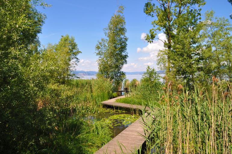 Keywords: web boardwalk switzerland lake zurich reed away bank waters lake