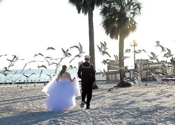 Keywords: wedding beach run beach wedding bride groom marriage island ceremony vacation honeymoon together romance romantic sand dress couple