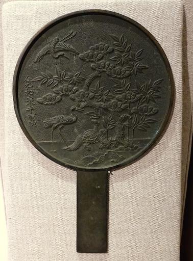 | Keywords: Wedding hand mirror, Japan, Early Edo period, 1615-c. 1740 AD, bronze - Spurlock Museum, UIUC - DSC06066.jpg en Exhibit in the Spurlock Museum University of Illinois at Urbana-Champaign - Urbana-Champaign Illinois USA This work is old enough so that it is in the public domain 2015-06-14 16 39 56 own Daderot other versions cc-zero Art of Japan in the Spurlock Museum Bronze mirrors of Japan | ||||