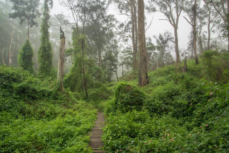Keywords: weeds path mist gum trees australia sydney australian bush