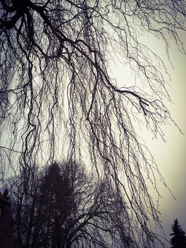 Keywords: weeping willow kahl tree plant blätterlos nature aesthetic pasture autumn mood braid branches hanging large bleak trist sad mourning gloomy