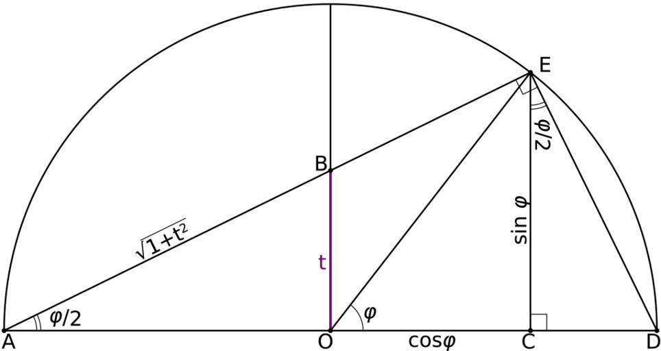 | Keywords: Weierstrass substitution.svg tangent half-angle formula or the Method of Last Resort Weierstrass substitution <math>t \tan\left \varphi\over2 \right </math> 2012-01-24 own Krishnavedala validSVG ElectroKid <small> </small> cc-zero Uploaded with UploadWizard Tangent function Trigonometry |