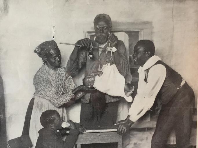 Keywords: weighing the christmas baby african american family 1889 new baby