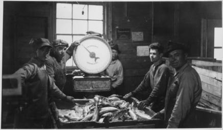 Keywords: Weighing the days fish catch - NARA - 285730.jpg Scope and content General notes 285730 Local identifier Department of the Interior Bureau of Indian Affairs Red Lake Agency 1964 NARA's Central Plains Region Kansas City NREA 400 West Pershing Road Kansas City MO 64108 other date ~ 1935 Record group Record Group 75 Records of the Bureau of Indian Affairs 1793 - 1999 Record group ARC 404 Red Lake Agency Photographs compiled 1910 - 1965 Series ARC 285700 File unit File unit ARC Variant control numbers NAIL Control Number NRE-75-RL PHO -897 Other versions <gallery> File Weighing_the_days_fish_catch_-_NARA_-_285730 tif tif File Weighing_the_days_fish_catch_-_NARA_-_285730 jpg jpg </gallery> NARA-cooperation PD-USGov People with fish |
