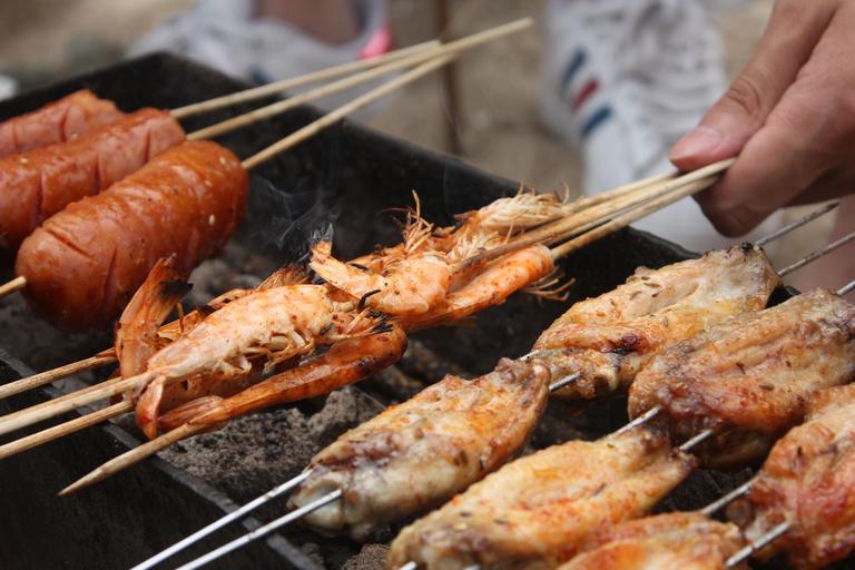 Keywords: weihai barbecue shrimp sausage seafood grill food outdoor