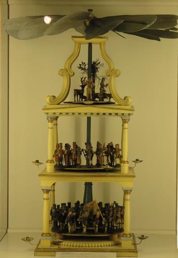 Keywords: Weihnachtspyramide aus Schönheide im Erzgebirge.jpg en Old Christmas pyramid from about 1830 - first half of the 19 century From Germany Ore Mountains Ore Mountain folk art crafted at Schoenheide in the Ore Mountains Now to be seen in the Brush- and Regional Museum at Schoenheide/Saxony de Weihnachtspyramide aus Schönheide im Erzgebirge ausgestellt im Schönheider Bürsten- und Heimatmuseum - Text der Beschriftung im Museum um 1830 gehört zu den ältesten erhaltenen Pyramiden des Erzgebirges Ca 60 geschnitzte Figuren Erste Etage Bergaufzug und Handwerker Zweite Etage Darstellung der biblischen Weihnachtsgeschichte Maria und Josef auf der Flucht nach Ägypten Engel Soldaten Schriftgelehrter ¦ 3 Etage Paradiesgärtlein mit Adam und Eva Baum mit Schlange exotischen Tieren Der 24 Dezember galt lange Zeit als Adam-und-Eva-Tag žDer klassische Drehturm aus Schönheide mit seiner Barockbekrönung mag auf die Zeit um 1830 zurückgehen Adolf Spamer Deutsche Volkskunst Sachsen Weimar 1954 žÃ„lteste geschnitzte Figuren des Bergaufzugs sind auf Pyramiden aus der ersten Hälfte des vergangenen Jahrhunderts gemeint ist das 19 Jahrhundert erhalten Claus Leichsenring Erzgebirgische Weihnachtspyramiden Dresden 1993 Seite 51 unter Hinweis auf die Abbildung der Schönheider Pyramide in dieser Veröffentlichung auf Seite 44 own Klaaschwotzer 2013-12-01 Christmas pyramids in Germany Ore Mountain folk art Cc-zero |