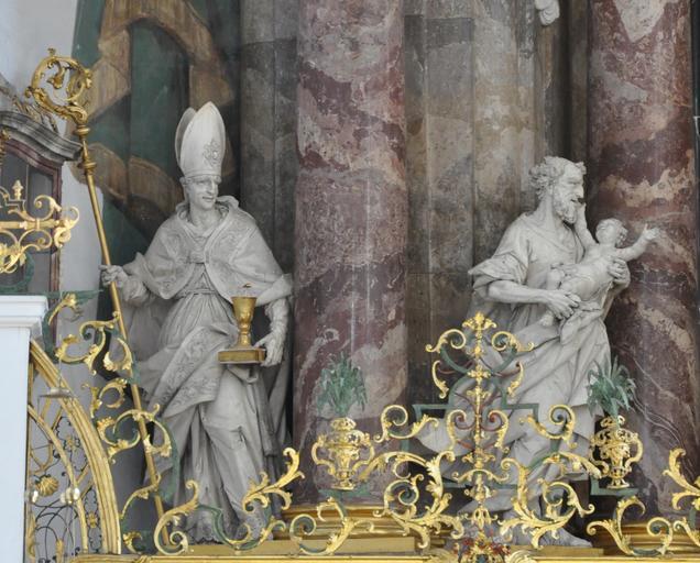 Keywords: Weingarten Hochaltar Figuren links.jpg Hochaltar der Basilika St Martin und Oswald Weingarten Württemberg Skulpturen von Diego Francesco Carlone 1719-1723 Detail Hl Konrad von Konstanz links und Hl Joseph mit Kind rechts own own photograph 2011-04 Photo Andreas Praefcke Hochaltar Basilika Weingarten Photos by User AndreasPraefcke Statues of Conrad of Constance in Germany Statues of Saint Joseph in Germany |