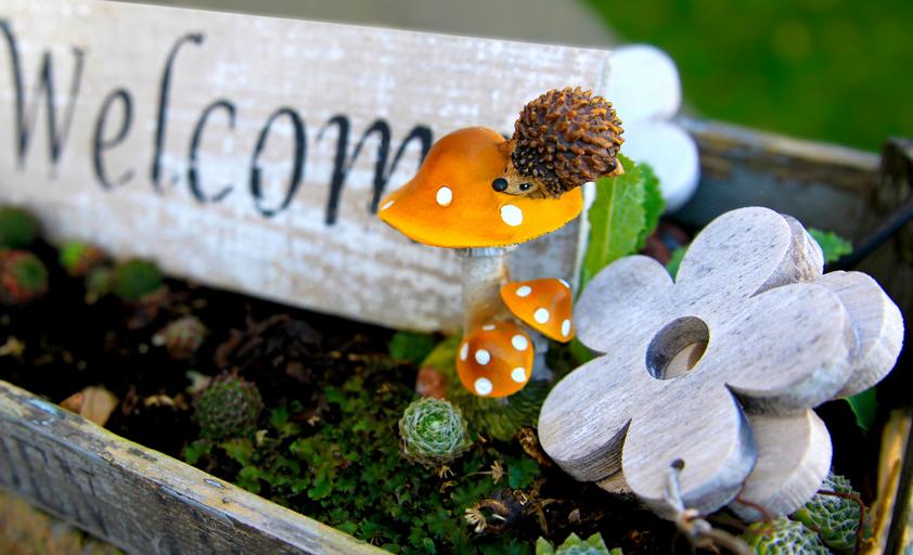 Keywords: welcome hedgehog animal wooden sign garden mushroom holzblume autumn autumn colours decoration orange