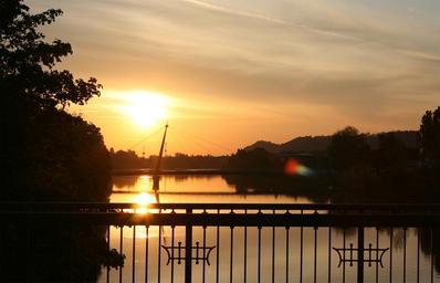 Keywords: Wels sonnenaufgang.jpg Blick auf den Trodatsteg von der Traunbruecke aus bei Sonnenaufgang / Picture from the Trodat-footbridge at Sunrise Wels Traun Traunbrücke Wels - Thalheim Sunrises of Austria Own Fressmotron