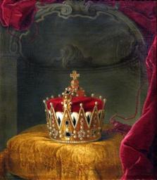 | Keywords: Weltliche Schatzkammer Wien.JPG Painting of the baroque Austrian archducal coronet Austria Vienna Darstellung der Barockkopie des österreichischen Erzherzoghutes Österreich Wien c 1765 Oil on canvas Institution Kunsthistorisches Museum Weltliche Schatzkammer own photo taken by Gryffindor in the Schatzkammer Inv Nr XIV 144 other versions <gallery> File Anonym Erzherzoghut SK WS XIV 144 JPG File Weltliche Schatzkammer Wien 3 JPG Today's appearance of the metal frame without the jewels and pearls </gallery> PD-old-100 Paintings by Anonymous in the Kunsthistorisches Museum 18th-century unidentified painters Archducal hat of Joseph II Holy Roman Emperor Paintings in the Secular and Ecclesiastical Treasury Crowns on cushions Drapery in paintings Secular and Ecclesiastical Treasury Archducal hats in art |