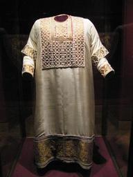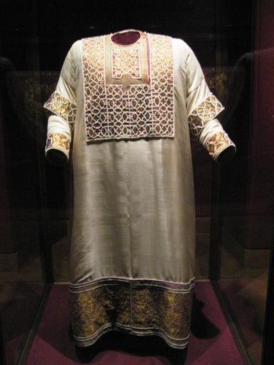 Keywords: Weltliche Schatzkammer Wien (164).JPG Die Alba Palermo königliche Hofwerkstatt 1181 mit späteren Ergänzungen Seide Golddrahtstickerei Perlen Smaragde Saphire Amethyst Spinell Granat Opal 154 cm hoch am Saum 127 cm breit SK Inv -Nr XIII 7 The Alb Palermo Royal Court Workshop 1181 With later additions Silk gold embroidery pearls emeralds sapphires amethyst spinel garnet opal 154 cm high 127 cm wide at the hem SK Inv No XIII 7 Own 2007-10 MyName Gryffindor Alb of the Holy Roman Empire Secular and Ecclesiastical Treasury |