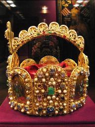 | Keywords: Weltliche Schatzkammer Wien (176)pano.jpg Die Reichskrone Westdeutsch 2 H 10 Jahrhundert; das Kronenkreuz einer Hinzufügung des frühen 11 Jahrhunderts; der Bügel aus der Zeit Kaiser Konrads II 1024-1039 ; die rote Samthaube aus dem 18 Jahrhundert Gold Email Zellenschmelz Edelsteine Perlen Stirnplatte H 14 9 cm B 11 2 cm ; Kronenkreuz H 9 9 cm SK Inv -Nr XIII 1 The Imperial Crown Western Germany 2nd half of the 10th century The cross is an addition from the early 11th century; the arch dates from the reign of Emperor Conrad II ruled 1024-1039 ; the red velvet cap is from the 18th century Gold cloisonné enamel precious stones pearls Brow plate H 14 9 cm W 11 2 cm; cross H 9 9 cm SK Inv No XIII 1 Own 2007-10 MyName Gryffindor Imperial Crown of the Holy Roman Empire Secular and Ecclesiastical Treasury |