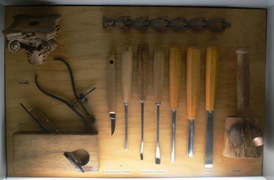 Keywords: Werkzeug des Holzschnitzers KGM.jpg Werkzeug des Holzschnitzers; Kunstgewerbemuseum Berlin own 2009 User FA2010 Wood carving tools Kunstgewerbemuseum Berlin
