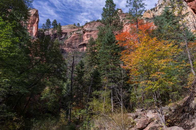 MAKE A MEME View Large Image The brilliant red, orange, and yellows of changing maple leaves mark the start of fall color in the West Fork of Oak Creek Canyon, October 12, 2016. There are a number of reasons why West Fork is one of the most popular trails on the ...