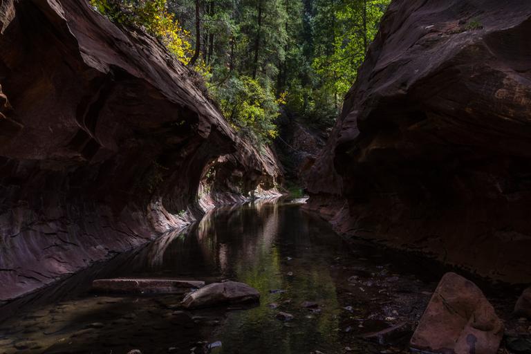 | Keywords: arizona coconino national forest coconinonationalforest forest service forestservice oak creek canyon oakcreekcanyon oak creek canyon vista oakcreekcanyonvista pentax k-1 pentaxk1 red rock ranger district redrockrangerdistrict red rock-secret mountain wilderness redrocksecretmountainwilderness sedona u.s. forest service usforestservice usfs west fork westfork west fork of oak creek canyon westforkofoakcreekcanyon autumn canyon fall fall color fallcolor fall colors fallcolors fall foliage fallfoliage forest hiking outdoors trail wilderness united states unitedstates outdoor landscape water waterfall The brilliant red, orange, and yellows of changing maple leaves mark the start of fall color in the West Fork of Oak Creek Canyon, October 12, 2016. This deep pool is the end of the maintained trail. There are a number of reasons why West Fork is one of the most popular trails on the Coconino National Forest. West Fork is fantastic throughout the year, but in autumn, the canyon is ablaze with color. Red and gold leaves float in clear reflecting pools along the creek, under a canopy of solid color. As for the trail itself, it's an easy stroll, but you do have to cross the stream in a number of places. Usually, that involves negotiating a few strategically placed stepping stones or taking a couple of steps in shallow water. The trail is marked and maintained for the first three miles. It ends at a deep pool in a narrow spot in the canyon. Parking is available at Call of the Canyon picnic site for a fee. This is a special fee site run by a concessionaire. Photo by Deborah Lee Soltesz, October 12, 2016. Credit: Coconino National Forest, U.S. Forest Service. Learn more about the West Fork of Oak Creek Canyon, Trail No. 108, Call of the Canyon picnic site, and the Coconino National Forest. The brilliant red, orange, and yellows of changing maple leaves mark the start of fall color in the West Fork of Oak Creek Canyon, October 12, 2016. This deep pool is the end of the maintained trail. There are a number of reasons why West Fork is one of the most popular trails on the Coconino National Forest. West Fork is fantastic throughout the year, but in autumn, the canyon is ablaze with color. Red and gold leaves float in clear reflecting pools along the creek, under a canopy of solid color. As for the trail itself, it's an easy stroll, but you do have to cross the stream in a number of places. Usually, that involves negotiating a few strategically placed stepping stones or taking a couple of steps in shallow water. The trail is marked and maintained for the first three miles. It ends at a deep pool in a narrow spot in the canyon. Parking is available at Call of the Canyon picnic site for a fee. This is a special fee site run by a concessionaire. Photo by Deborah Lee Soltesz, October 12, 2016. Credit: Coconino National Forest, U.S. Forest Service. Learn more about the West Fork of Oak Creek Canyon, Trail No. 108, Call of the Canyon picnic site, and the Coconino National Forest. |