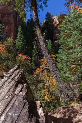 MAKE A MEME View Large Image The brilliant red, orange, and yellows of changing maple leaves mark the start of fall color in the West Fork of Oak Creek Canyon, October 12, 2016. There are a number of reasons why West Fork is one of the most popular trails on the ...