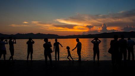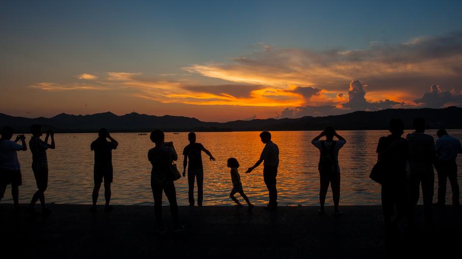 Keywords: west lake the scenery character sunset people silhouette