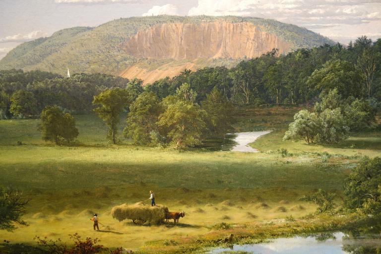 Keywords: West Rock, New Haven, by Frederic Edwin Church, detail, 1849, oil on canvas - New Britain Museum of American Art - DSC09286.JPG en Exhibit in the New Britain Museum of American Art New Britain Connecticut USA This artwork is in the public domain because the artist died more than 70 years ago The museum permitted photographs of this exhibit without restriction 2013-06-27 12 26 03 own Daderot PD-old-70-1923 cc-zero West Rock New Haven by Frederic Edwin Church Uploaded with UploadWizard |
