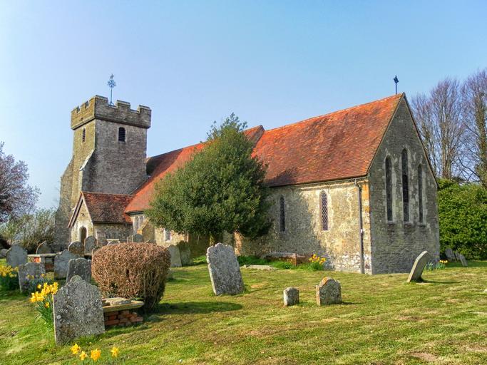 Keywords: west sussex england great britain church building architecture grass lawn cemetery graves headstone tree nature outside country countryside