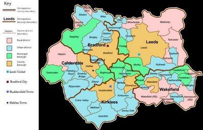 Keywords: West Yorkshire football.jpg en A map of the metropolitan county of West Yorkshire England This map highlights former and modern district boundaries see Key for colour meaning The locations of the major football clubs have also been added West_Yorkshire_County png 2010-08-22 11 45 UTC West_Yorkshire_County png Her Majesty's Stationery Office Jza84 derivative work Mtaylor848 <span class signature-talk >talk</span> Added football clubs on for use in the article on West Yorkshire football derbys User Mtaylor848 West_Yorkshire_County png Own work by uploader Jza84 9 January 2009 Per</nowiki> Uploaded with derivativeFX Maps of West Yorkshire Sports in West Yorkshire Leeds United A F C Bradford City A F C Huddersfield Town FC F C Halifax Town |