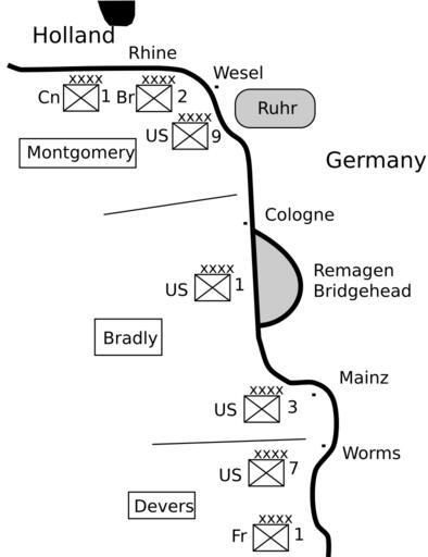 | Keywords: Western Europe March 1945.svg en Title The First Allied Airborne Army in Operation Varsity Applying the Lessons of Arnhem Map composed by a United States Army War College student as part of his Master's thesis in the public domain as a work of a member of the US Government Further source information can be found http //stinet dtic mil/oai/oai verb getRecord metadataPrefix html identifier ADA302856 here From this image on En-Wikipedia Image was origional was from http //oai dtic mil/oai/oai verb getRecord metadataPrefix html identifier ADA302856 here Abbatiello John J and then J smith Origional November 3 1995 - SVG October 17 2008 PD-USGov Maps of the Western Front in World War II |