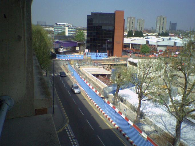 | Keywords: Westfield development2.jpg The Westfield White City shopping centre development London showing the site of the former Wood Lane London Underground station The Central line tunnel roof is still open near the corner of Wood Lane and Ariel Way The recently-added bridge over Wood Lane is on the Hammersmith City line Work has not yet started on the new White City station on this line Own 2006-05-14 Cnbrb Westfield London Central Line Hoardings construction Wood Lane tube station Wood Lane Central Line tube station |