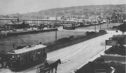 Keywords: Weston-super-Mare Beach Lawns with tramcars.jpg en The Beach Lawns at Weston-super-Mare Somerset England Seen looking north-westwards from near Oxford Street towards the Grand Pier three tramcars can be seen In the foreground is a single deck car headign north which is waiting for a double deck tram on the left to negotiate the triangular junction at Oxford Street on the right A third car can be seen in the distance by the entrance to the Grand Pier Copy of an old postcard Author ~ 1905 <gallery> File Weston-super-Mare tramcar 16 near Oxford Street jpg File Weston-super-Mare tramcar 1 tbc at Oxford Street junction jpg </gallery> DEFAULTSORT 1905 Weston-super-Mare Weston-super-Mare Tramways Weston-super-Mare Grand Pier Postcards of Weston-super-Mare Horse-drawn carts in the United Kingdom PD-old |
