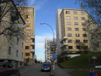 Keywords: Westye Egebergs gate2.JPG Blokkene i Westye Egebergs gate sett fra Akersveien own 2007-04-13 MyName Helge Høifødt Gamle Aker Apartment buildings in Oslo