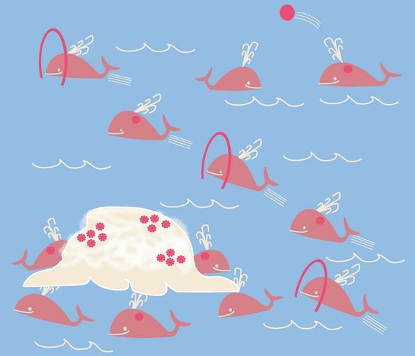 Keywords: whale fish sea island wave spout play swim ball hoop flower happy water sand parade game warm