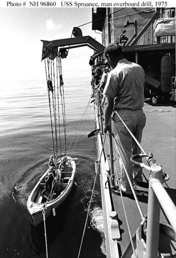 MAKE A MEME View Large Image Whaleboat Spruance NHHC h96860.jpg en USS Spruance DD-963 Crewmen lower a 26-foot motor whaleboat for a man overboard drill during the ship's shakedown cruise in the Gulf of Mexico Autumn 1975 http //www history navy mil/photos/sh-usn/...