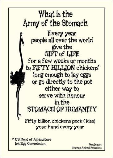 Keywords: chicks food animal rights animalrights animal welfare animalwelfare animals animal rights ethics chicken fowl eggs text monochrome What is the Army of the Stomach? Explore Serious Humour for Human-Animal Relations' 193 photos on Flickr!