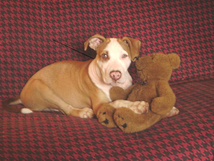 Keywords: Whatcha Lookin At.JPG en American Pit Bull Terrier Own Edwin Luciano 7-15-08 American Pit Bull Terrier puppies Dogs and stuffed animals Dogs on couches Dogs on red background Teddy bears