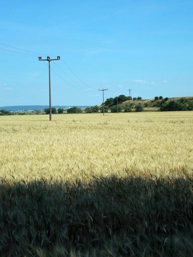Keywords: wheat field wheat mast line power poles connection phone signal transmission telephone line field